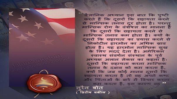 वैज्ञानिक अध्यान इस बात कि पुष्टी करते हैं कि दूसरों कि सहायता करने से मान्सिक तनाव दूर होता है। परन्तु मान्सिक रोग के वंशेषज्ञ का मानना है कि दूसरों कि सहायता करने से मान्सिक तनाव कम होता है। क्यों के दूसरों कि सहायता का प्रयास करने से निकोटीन हारमोन का अधिक स्राव होता है। यह हारमोन मान्सिक सुख के लिए मदद देता है। अमेरिकन स्वास्थ संवर्धन संस्थान के पूर्व अध्यक्ष अलान लेकस का कहना हैः दूसरों कि सहायता करना मान्सिक तनाव के दबाव को कम करता है, क्यों कि जब कोई मानव दूसरों कि सहायता करता है तो वह अपने कष्ट और चिंताओं के बारे में विचार करना कम करता है, इस कारण वह मान्सिक सुख से प्रभावित होता है।