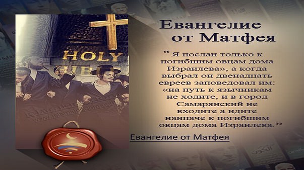 «Я послан только к погибшим овцам дома Израилева», а когда выбрал он двенадцать евреев заповедовал им: «на путь к язычникам не ходите, и в город Самарянский не входите а идите наипаче к погибшим овцам дома Израилева».