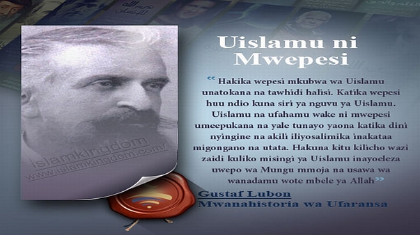 “Hakika wepesi mkubwa wa Uislamu unatokana na tawhidi halisi. Katika wepesi huu ndio kuna siri ya nguvu ya Uislamu. Uislamu na ufahamu wake ni mwepesi umeepukana na yale tunayo yaona katika dini nyingine na akili iliyosalimika inakataa migongano na utata. Hakuna kitu kilicho wazi zaidi kuliko misingi ya Uislamu inayoeleza uwepo wa Mungu mmoja na usawa wa wanadamu wote mbele ya Allah.”